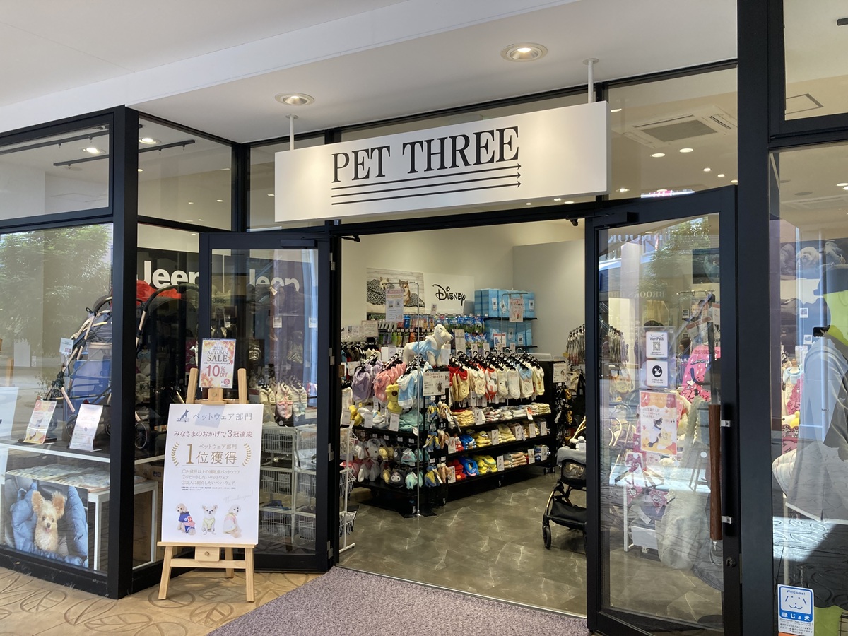 「洋服の数だけカワイイが増える」をコンセプトに、犬・猫向けのカジュアルウェアやベッド、雑貨まで豊富に扱うペット用品専門店「PET THREE」。高品質と低価格を両立させながら、ペットとのライフスタイルをもっと楽しく、快適にする多彩な商品とサービスを展開しています。
