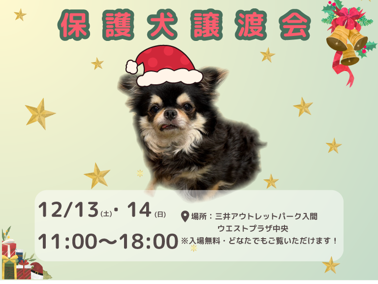 12/13(土)、14(日)は「保護犬譲渡会」を開催します!