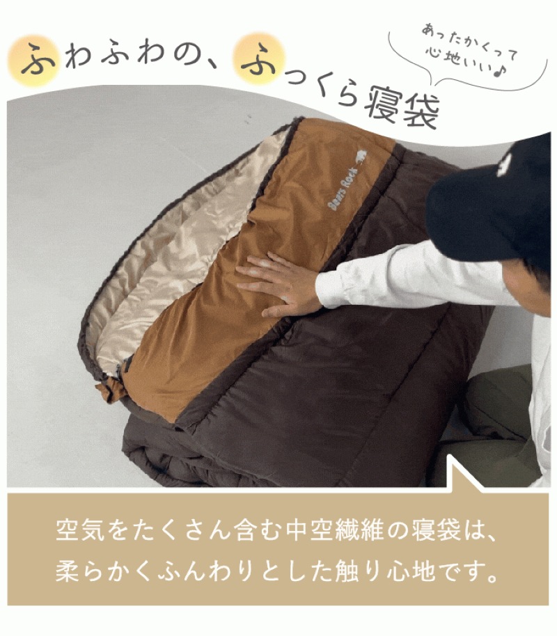 Bears Rock独自の「BRウォーム®」機能を搭載。中綿に「3D中空化学繊維」を組み込むことで、熱を立体的に保持し、一晩中ぬくもりを持続させます。