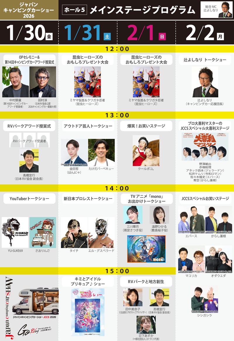ジャパンキャンピングカーショー実行委員会は、2026年1月30日(金)から2月2日(月)までの4日間、幕張メッセにて「ジャパンキャンピングカーショー2026」を開催します。