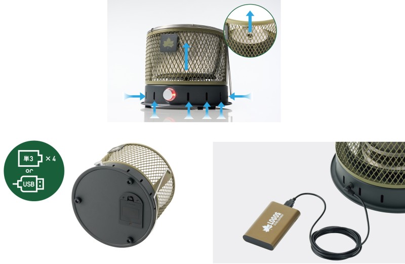電源は単三アルカリ乾電池(4本)とUSB給電の2パターンに対応。モバイルバッテリーからも給電できるため、電源のないキャンプサイトでも安心して使用できます。