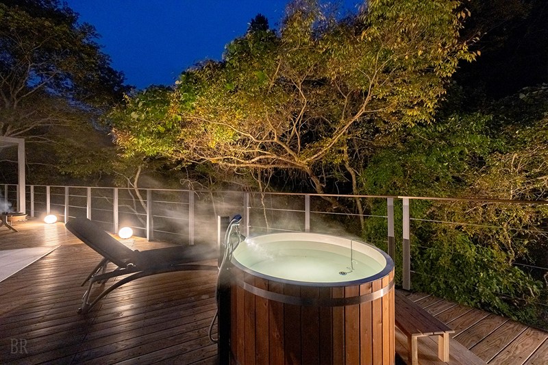 客室「澄懐 -Chokai-」には、本格的な国産ヒノキ造りのバレルサウナを完備(1日1組限定)。