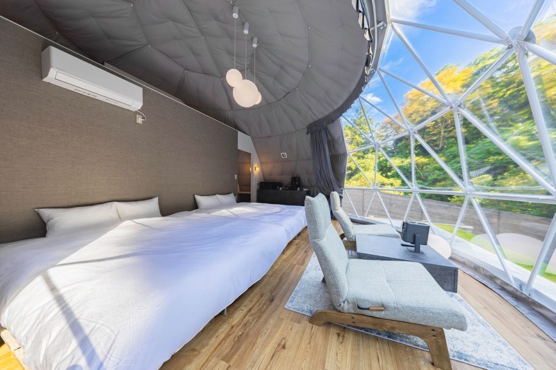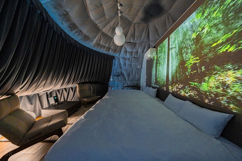 各客室には、プロジェクターや焚き火スペース、BBQ設備などを完備。