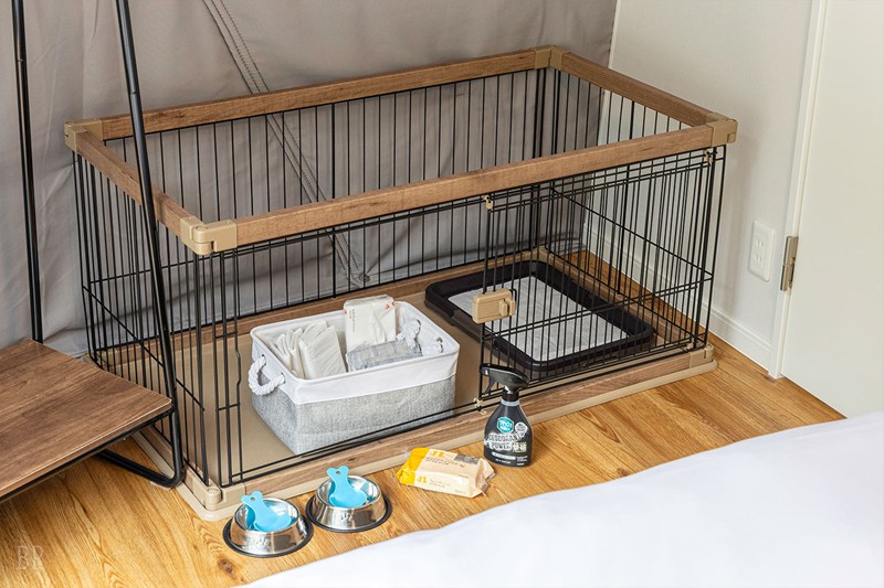 ケージやトイレシートなど、愛犬用アメニティも充実していて安心です。