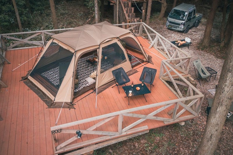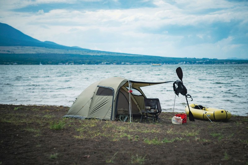 こちらはルーフフライとタープが一体化されたデザインで、ポール1本で設営が可能。日光を90%、UVを99%カットするPUブラックコーティングが施されており、日差しの強い季節も快適に過ごせます。