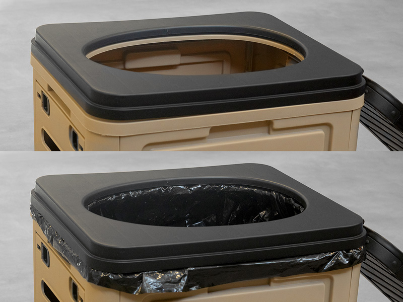 最大の特徴は、掃除の不快感をゼロに近づける独自構造にあります。便座枠パーツによって袋と便座が密着するように固定できるため、汚れの跳ね返りや本体への付着をガード。水が使えない状況でも清潔な状態をキープできます。