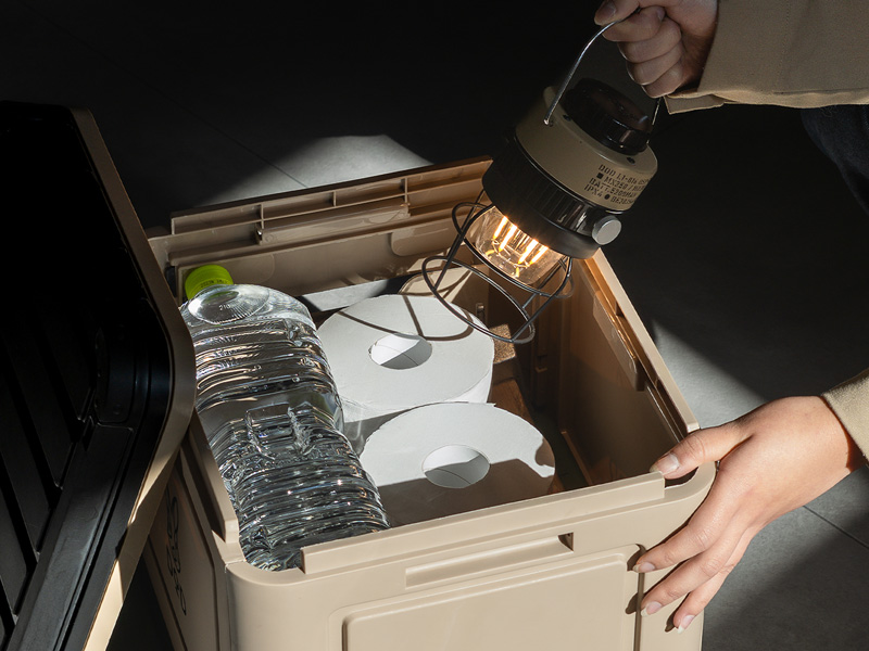 使わないときは防災グッズやアウトドア用品を収納できるスタイリッシュなコンテナとしても利用可能です。