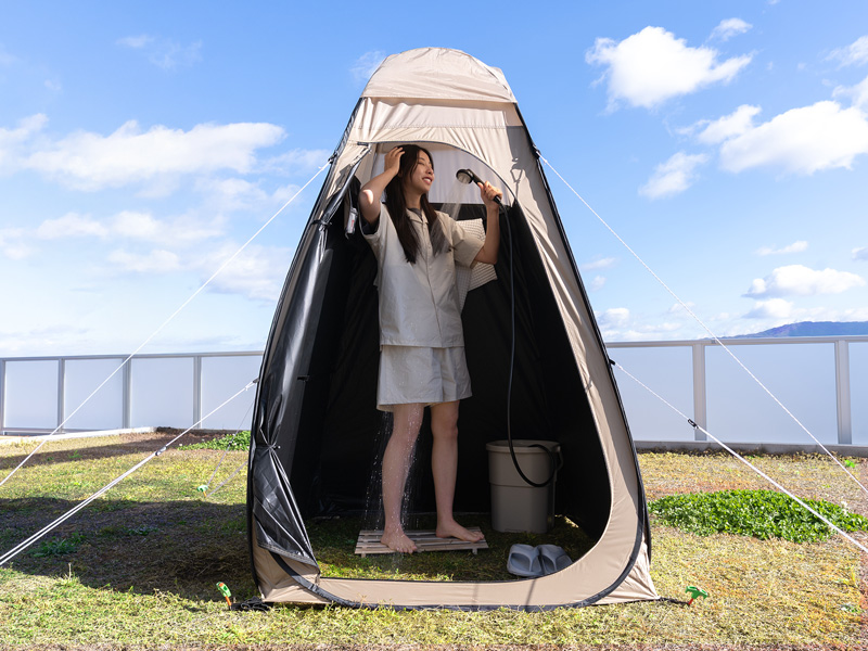 海水浴での着替えルームや、簡易トイレの設置場所、シャワールームとして、家族のプライバシーと安心を守ります。