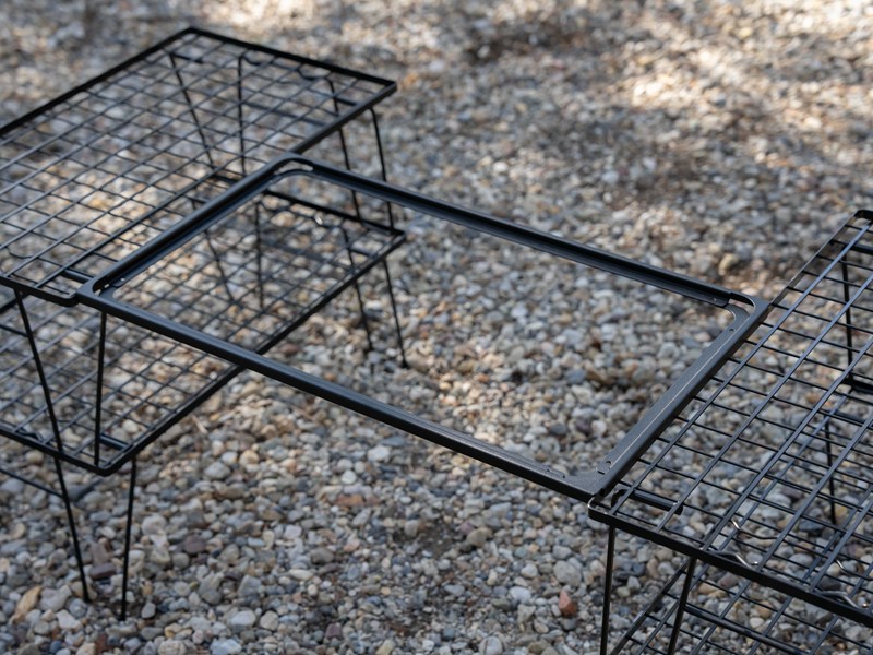 2025年に発売され大好評だった「88」サイズ用に続き、待望のリリースとなる本アイテム。足元に収納スペースを簡単に追加できる優れものです。バーナーやコンロをセットする際に取り外した天板も、このラックの棚板として有効活用できるため、無駄なくスッキリとしたサイト構築が可能になります。