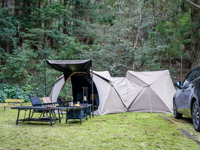 ビングと寝室を分けたり、グループキャンプで広々としたプライベート空間を確保したりと、柔軟なサイトレイアウトを実現してくれます。