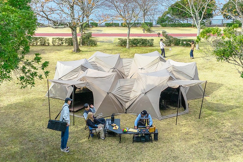 グループキャンプに最適「ヘキサ型キャンプシェード用トンネルL」も同日発売