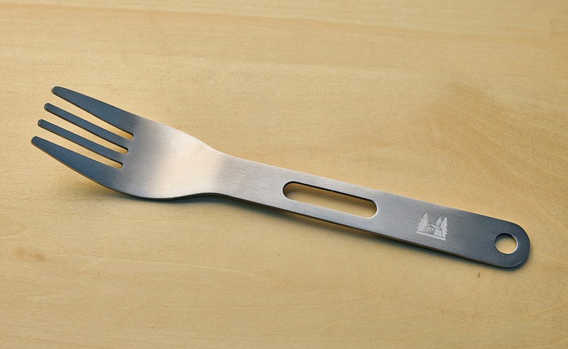 付属の専用ポーチは軽量ながらクッション性と厚みがあり、中央がほどよくシェイプされた形状になっています。そのため、カトラリー3本を収納しても中でガチャガチャとばたつくことがありません。
