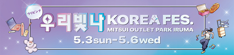 5月3日(日・祝)~5月6日(水・休)の期間、昨年好評を博した韓国イベントが三井アウトレットパーク 入間に帰ってくる! カラー診断&メイク体験、ワークショップ、ダンスショーなど、 新しい”自分”や”好き”に出会える、韓国コンテンツが勢ぞろい♪ ※詳細は4月中旬以降公開予定の特設ウェブサイトにてご確認ください。