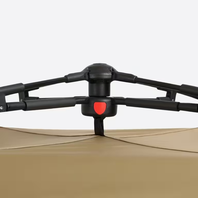 中央の機構を操作するだけで、まるで傘を開くように直感的に設営ができる3人用テントです。